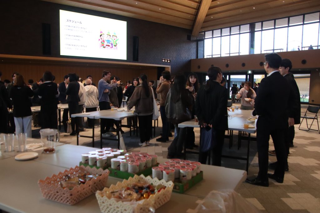 終了後は希望者のみで立食パーティも開催。企業の担当者と学生でざっくばらんに交流することができました。